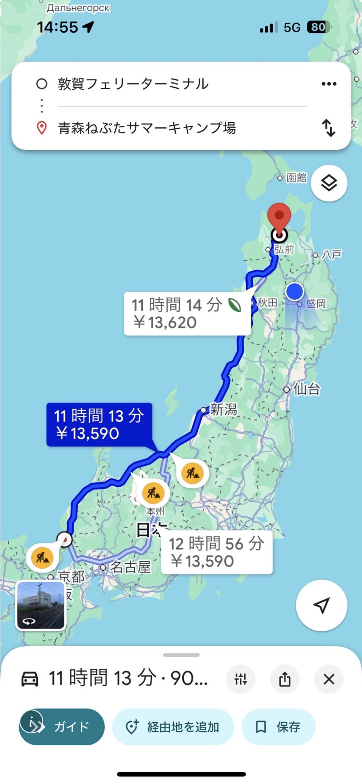 とはいえフェリーで北海道へ行った場合、小樽~函館が250km位なので実質走るのは800kmだよね!っていう謎理論。